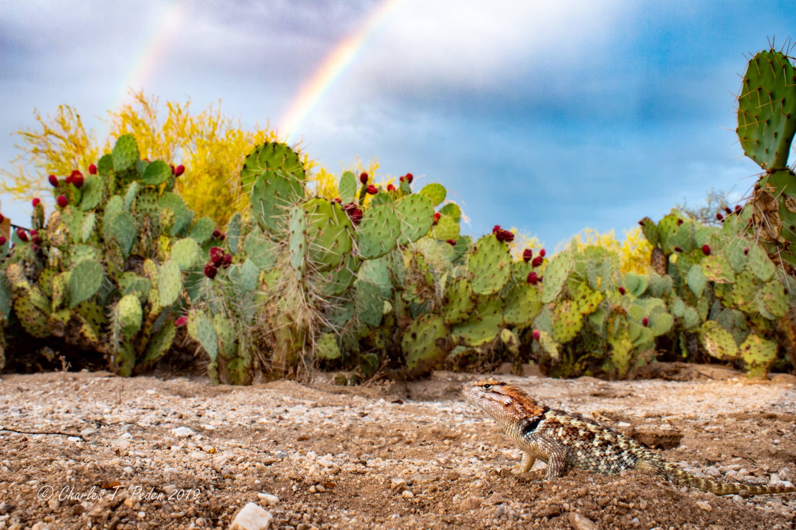 Female desert spiny lizard with prickly pear cactus and a rainbow. by Charles Peden | Nov 20, 2022 | 0 comments Submit a Comment Cancel replyYour email address will not be published. Required fields are marked *Comment * Name * Email * Website Save my name, email, and website in this browser for the next time I comment.